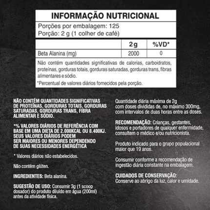 Beta Alanina 250g – 100% Puro Importado – Soldiers Nutrition
