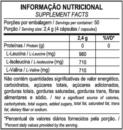 | Porção recomendada | Sugestão de uso: Adicione 1 dosador (5g) de BCAA 10:1:1 em 100 ml de água. |
