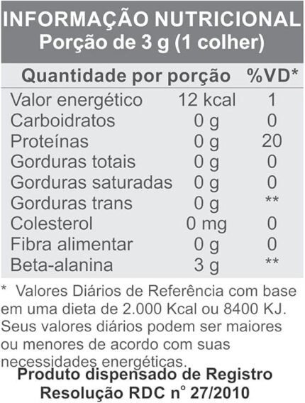Beta Alanina. NÃO CONTÉM GLÚTEN.