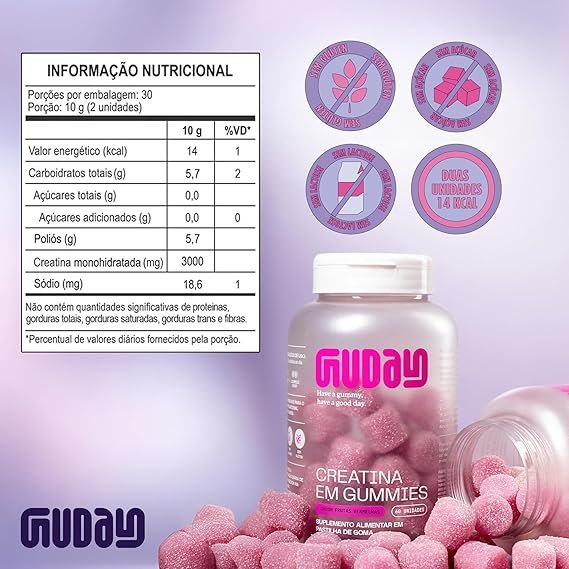 Guday Creatina Monoidratada em Gummies 60 Gomas Sabor Frutas Vermelhas – Suplementação Prática e Refrescante para Sua Rotina de Treinos