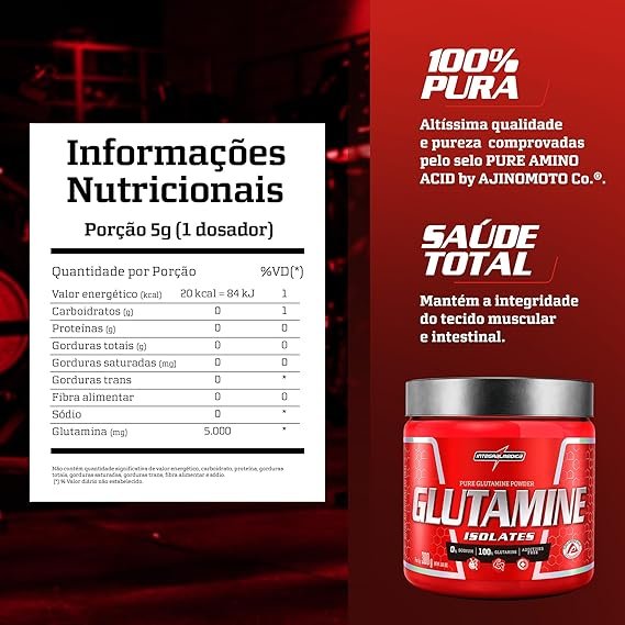 - 【PARA UM ESTILO DE VIDA ATIVO】Disponível em potes de 150 g e 300 g, é um produto indispensável na rotina de quem deseja se superar em cada treino. Inclua a Glutamina Integralmedica no seu dia a dia e sinta a diferença nos seus resultados.